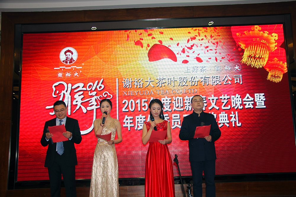 “歡聲笑語辭舊歲,金猴納福賀新年?!蹦觋P(guān)將至,謝裕大茶葉股份有限公司迎來了一個嶄新的丙申猴年。逢此佳時,謝裕大全體員工于2016年2月1日在黃山市徽州區(qū)陽光大酒店隆重召開“2015年年度總結(jié)表彰大會暨2016年迎新春聯(lián)歡會”。謝裕大公司總部全體員工、合肥、上海、淮南、六安、醉王、祁門等分子公司優(yōu)秀員工代表等近500人參加了此次盛會。