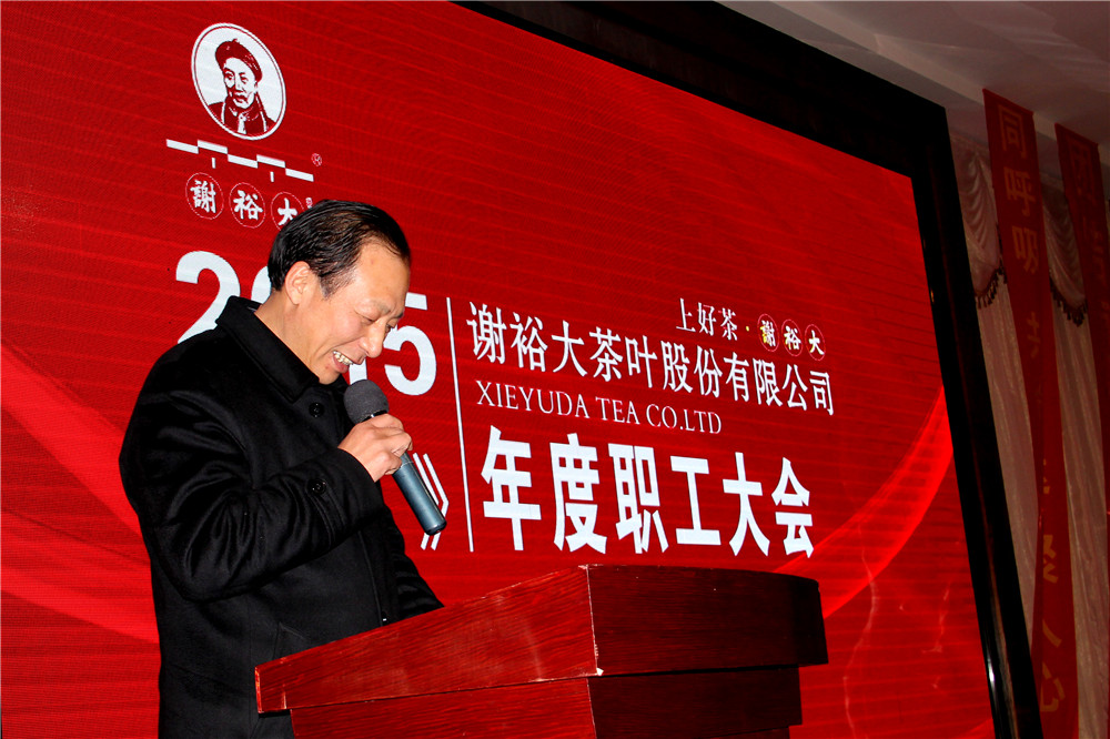 董事長謝一平隨后進行新年致辭,首先董事長對所有謝裕大人做出的成績進行了充分的肯定和贊許,并對即將到來的2016做出了展望。希望全體謝裕大人能夠克服困難,開拓奮進,繼續(xù)發(fā)揚吃苦耐勞的“漕溪精神”,希望新的一年大家繼續(xù)齊心協(xié)力、眾志成城,謝裕大也將繼續(xù)光前裕后,大展鴻途!