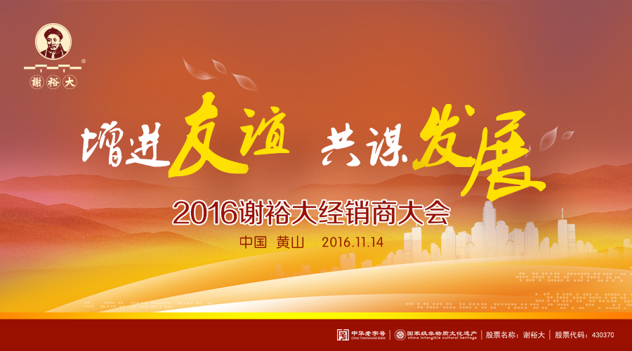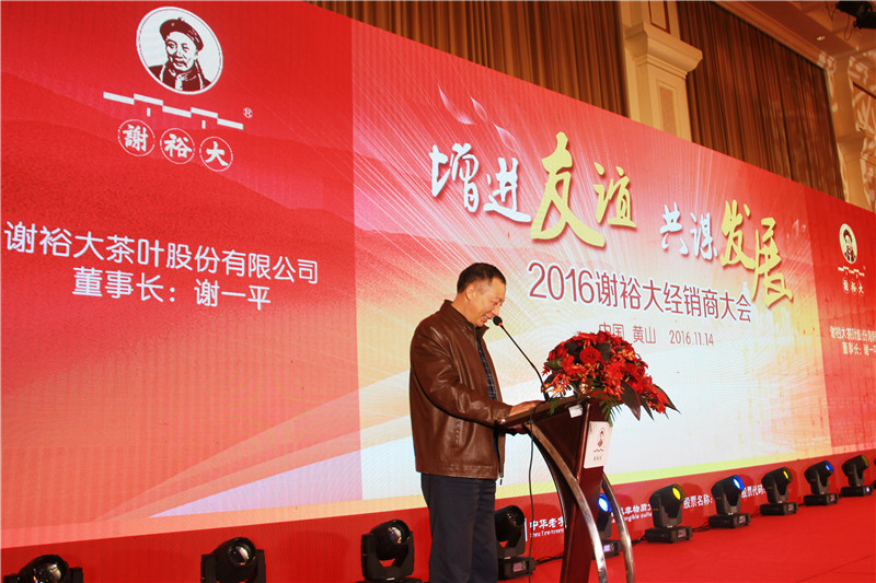 2016年11月13日-15日,謝裕大茶葉股份有限公司2016年度經(jīng)銷商會(huì)議在黃山新華聯(lián)豪生大酒店隆重召開(kāi),近120家優(yōu)秀經(jīng)銷商代表應(yīng)邀齊聚黃山。本屆大會(huì)以“增進(jìn)友誼 共謀發(fā)展”為主題,力求開(kāi)啟合作共贏新篇章,會(huì)議發(fā)布了企業(yè)戰(zhàn)略規(guī)劃和2017年新產(chǎn)品包裝;同時(shí)獎(jiǎng)勵(lì)優(yōu)秀經(jīng)銷商,鼓勵(lì)經(jīng)銷商與謝裕大共同發(fā)展,并分析和探討了“徽茶未來(lái)的發(fā)展方向、機(jī)遇和挑戰(zhàn)”等話題。