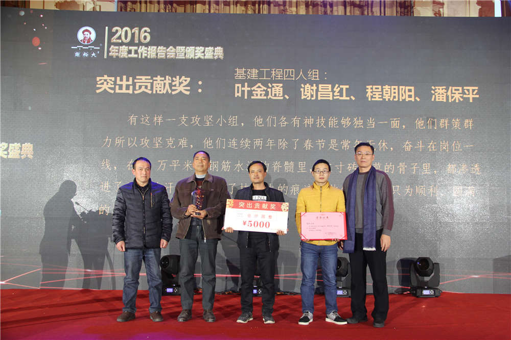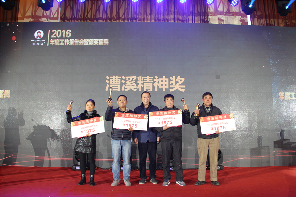 隨后,伴著喜慶的音樂,在謝裕大行政總監(jiān)戴志剛的主持下舉行了“頒獎典禮”。董事長謝一平、總經(jīng)理楊義云等公司諸高層領(lǐng)導(dǎo)分別為 2016 年度謝裕大“漕溪精神獎”、“突出貢獻獎”、“先進工作者”等獲得者頒獎。其中“漕溪精神獎”從今年開始設(shè)立,也是我們謝裕大茶人的年度至高榮譽。漕溪是謝裕大品牌的起源地,也見證者謝裕大的百年成長。漕溪精神是對老一代謝裕大人的勤勉堅韌、艱苦奮斗的創(chuàng)業(yè)路的精準詮釋,也一直引領(lǐng)者謝裕大一代又一代茶人的成長。漕溪精神獎的設(shè)立旨在與大家共同見證這種精神的綿綿傳承與歲月記載,也正是有了像他們一樣的漕溪精神者們的共同打拼和奉獻,才成就了謝裕大的今天!