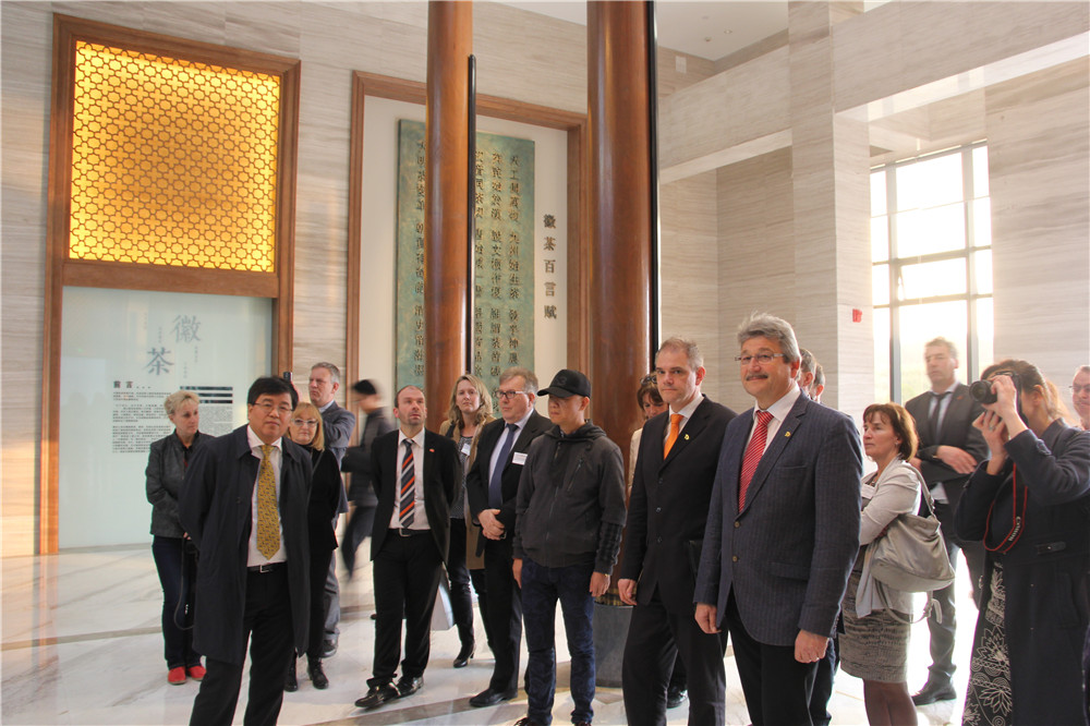 德國施特拉爾市市長亞歷山大·巴德洛夫表示德國總理默克爾到訪中國時收到的禮物就是謝裕大茶,今天很榮幸能夠來到謝裕大參觀,希望可以進一步加深與謝裕大的合作。謝裕大希望以此次活動為契機,大力弘揚中國傳統(tǒng)徽茶文化,進一步加大與德方交流力度,進一步增進兩地人民的友誼;期待在不遠的將來,摸索出多方位的合作途徑,兩地能夠?qū)崿F(xiàn)互利合作、共同發(fā)展。