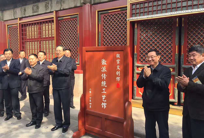 4月10日,“徽匠神韻——安徽徽州傳統(tǒng)工藝故宮特展”暨徽派文創(chuàng)館揭牌儀式在北京故宮博物院永壽宮舉行。省委書記、省人大常委會主任李錦斌,省委副書記、省長李國英,文化部部長雒樹剛,故宮博物院院長單霽翔出席儀式并共同為徽派文創(chuàng)館揭牌。文化部副部長項(xiàng)兆倫;省委常委、秘書長唐承沛,省委常委、宣傳部長虞愛華,副省長謝廣祥,省政府秘書長侯淅珉;市委書記任澤鋒,市委副書記、市長孔曉宏;省政府副秘書長汪韌,省文化廳廳長袁華;副市長陸群等出席儀式。