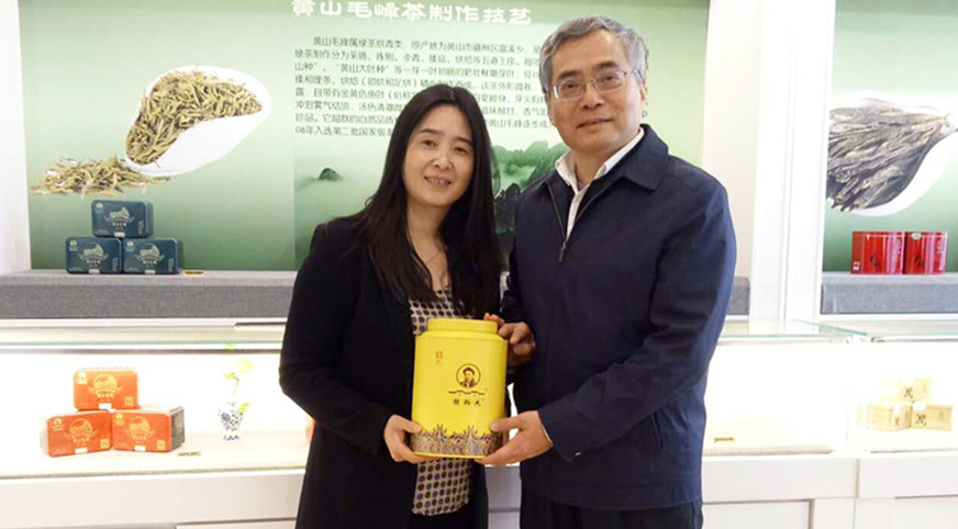 謝裕大北京辦事處負(fù)責(zé)任人張紅梅(左一)與黃山市副市長陸群(右一)合影
