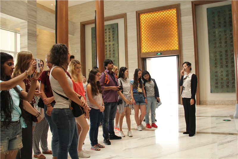 孟夏之日,萬物并秀。19日上午,上海外國語大學中外師生實踐團一行到訪謝裕大茶文化博物館。實踐團由來自15個國家的26名留學生代表和中國師生代表共42人組成,多為一帶一路相關國家的留學生或者學習相關語言的中國學生。謝裕大茶文化博物館常務副館長徐紀苗陪同接待。