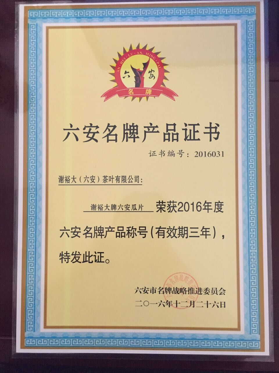 近日,六安市名牌戰(zhàn)略推進(jìn)委員會公布2016年六安名牌,謝裕大牌六安瓜片喜獲2016年度六安名牌產(chǎn)品稱號。此次獲此殊榮不僅是對謝裕大品牌的肯定,更是對謝裕大名牌戰(zhàn)略工作的嘉獎。謝裕大將繼續(xù)努力,不斷提高質(zhì)量品牌升級戰(zhàn)略,大力實施質(zhì)量強(qiáng)企和名牌發(fā)展戰(zhàn)略,繼續(xù)積極走好品牌建設(shè)之路。