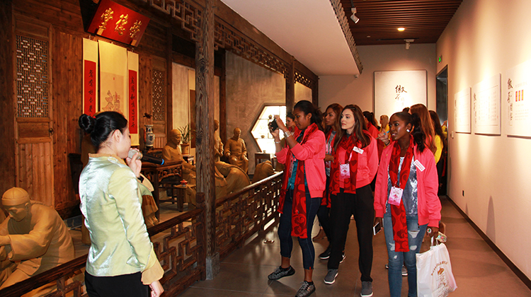 隨后大家依次參觀了古色古香又不失現(xiàn)代園林風(fēng)的謝裕大茶文化博物館,她們一邊傾聽關(guān)于徽州茶文化的英文講解,一邊感嘆于謝裕大百年歷史的傳承和厚重的文化底蘊(yùn);尤其對徽州茶文化的茶俗部分十分感興趣,不停地與英文翻譯進(jìn)行詢問溝通,興致勃勃的互相合影留念。