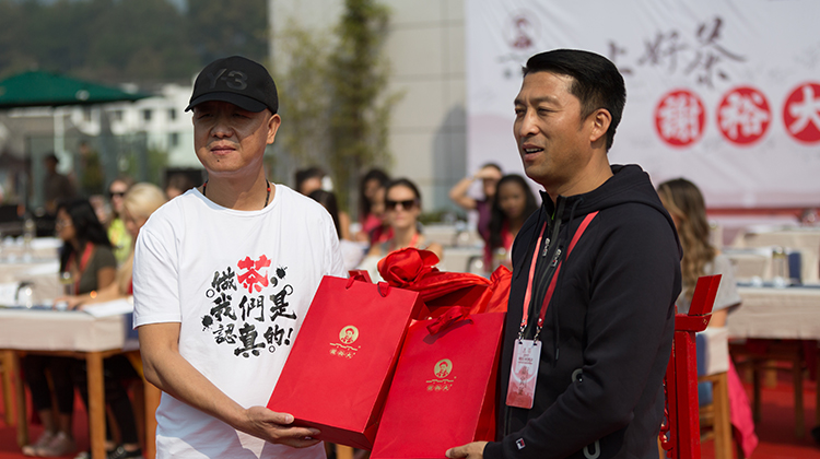 謝裕大常務(wù)副總謝毅強(qiáng)(左)向新絲路集團(tuán)總裁李冰先生(右)贈送茶禮