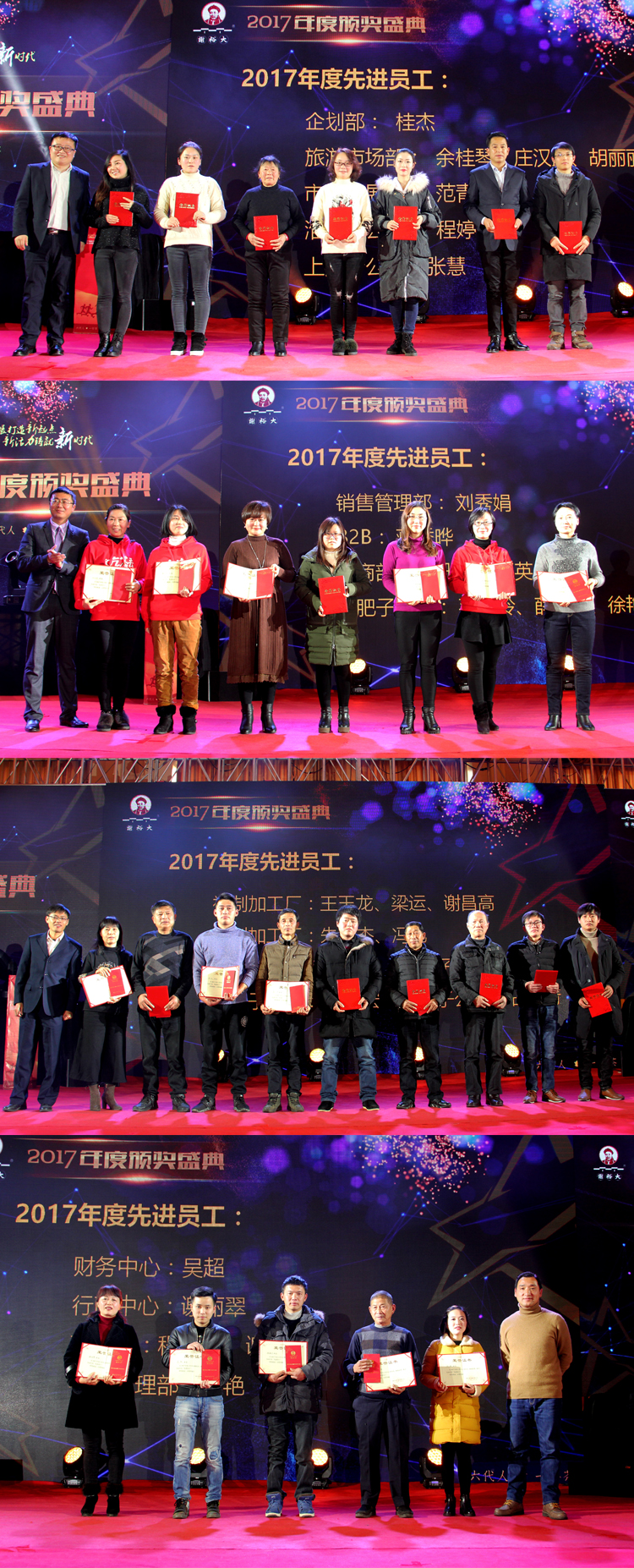 隨后的謝裕大年度頒獎盛典上董事長謝一平、總經(jīng)理謝明之等等公司高層領(lǐng)導(dǎo)分別為2018年度謝裕大“漕溪精神獎”、“突出貢獻(xiàn)獎”、“先進(jìn)工作者”、“優(yōu)秀管理者”、“優(yōu)秀員工”等獲得者頒獎、合影。