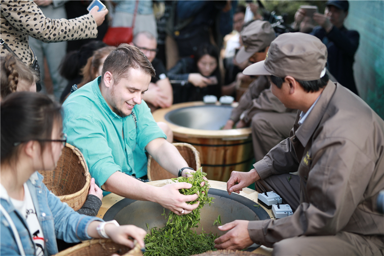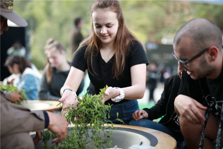 留學(xué)生代表學(xué)習(xí)體驗手工制茶技藝