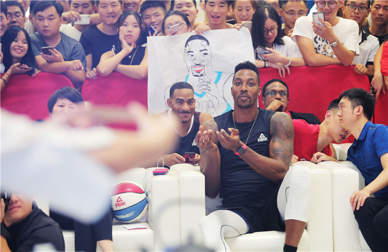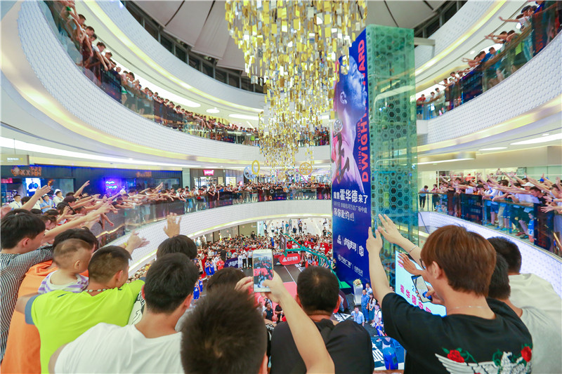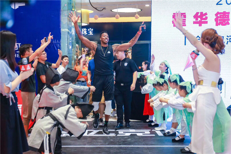“魔獸”霍華德,在球迷山呼海嘯般的吶喊中如約出現(xiàn),隨即被眾人圍擁,旅程的風(fēng)塵未卸,依然滿臉笑容忙著和到場的觀眾揮手致謝,盡展親和一面,真實(shí)又吸粉。在現(xiàn)場,霍華德熱情的與每一位到場球迷互動(dòng),甚至把自己的簽名籃球扔給了遠(yuǎn)處的二樓球迷,瞬間點(diǎn)燃全場的火熱氣氛。