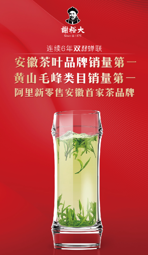 謝裕大”雙十一”捷報(bào)傳來:謝裕大于2018年天貓狂歡盛宴中,再獲雙料冠軍,榮獲安徽茶葉品牌銷量第一!天貓商城黃山毛峰類目銷量第一!自2013年起,連續(xù)6年謝裕大穩(wěn)居兩大頭把交椅,當(dāng)屬安徽茶葉之光,光耀電商徽茶。更有天貓后天大數(shù)據(jù)統(tǒng)計(jì),”雙十一”當(dāng)天天貓商城黃山毛峰單品銷量前三甲都來自謝裕大品牌,黃山毛峰銷量遙遙領(lǐng)先,遠(yuǎn)超第四名一倍多;綠茶大品類排名前5,行業(yè)占比分量增大,更重要的是,在天貓商城黃山毛峰類目排行第1名!