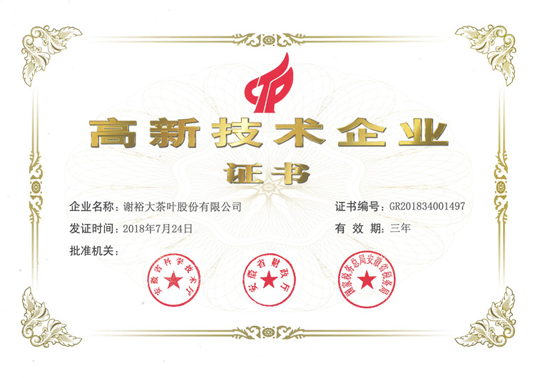 高新企業(yè)認(rèn)證門檻高,條件嚴(yán)苛,程序嚴(yán)謹(jǐn)。除需滿足研發(fā)和相關(guān)技術(shù)創(chuàng)新活動(dòng)的科研人數(shù)占比,研究開(kāi)發(fā)費(fèi)用占比,在生產(chǎn)、技術(shù)、質(zhì)量、財(cái)務(wù)管理上也有著非常高的要求。獲得“高新技術(shù)企業(yè)”認(rèn)證這個(gè)身份,無(wú)論對(duì)于何種企業(yè)都是一個(gè)難得的資質(zhì)認(rèn)證,對(duì)依靠科技立身的企業(yè)更是不可或缺的硬招牌,其品牌影響力僅次于中國(guó)名牌產(chǎn)品、中國(guó)馳名商標(biāo)、國(guó)家免檢產(chǎn)品。科技創(chuàng)新助推企業(yè)發(fā)展,核心競(jìng)爭(zhēng)力促品牌提升。謝裕大在2012、2015年就曾獲得高新企業(yè)的認(rèn)定,此次重新認(rèn)定,是謝裕大連續(xù)第三次通過(guò)高新技術(shù)企業(yè)認(rèn)定,這不僅是對(duì)謝裕大在茶行業(yè)研發(fā)創(chuàng)新領(lǐng)域所做工作的持續(xù)肯定,將有力提升企業(yè)的品牌形象,同時(shí)也鼓舞著我們繼續(xù)創(chuàng)新發(fā)展,優(yōu)化自身資源,以強(qiáng)大的科技實(shí)力為基礎(chǔ),更加注重科技創(chuàng)新體系,加大研發(fā)項(xiàng)目投入力度,發(fā)揮技術(shù)優(yōu)勢(shì)和模范帶頭作用,為提升企業(yè)核心競(jìng)爭(zhēng)力、充實(shí)企業(yè)創(chuàng)新發(fā)展后勁,為企業(yè)可持續(xù)發(fā)展提供強(qiáng)有力的技術(shù)支撐,讓更多的好茶真正走進(jìn)千家萬(wàn)戶。