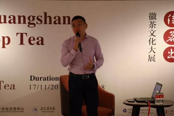 展覽開幕式上,安徽省茶文化研究會副秘書長、謝裕大茶文化博物館館長徐紀苗帶來了“徽風(fēng)皖韻 茶中世界”專題講座。他介紹說,徽州水秀山靈,氣候溫潤降水充沛,適合茶葉的生長與栽培?!案呱皆旗F出好茶”,徽州出產(chǎn)的茶葉名品包括黃山毛峰、太平猴魁、祁門紅茶等。他還回答了現(xiàn)場聽眾提出的一些問題,并進行了茶藝展示,讓聽眾邊品茗邊了解茶文化相關(guān)知識。