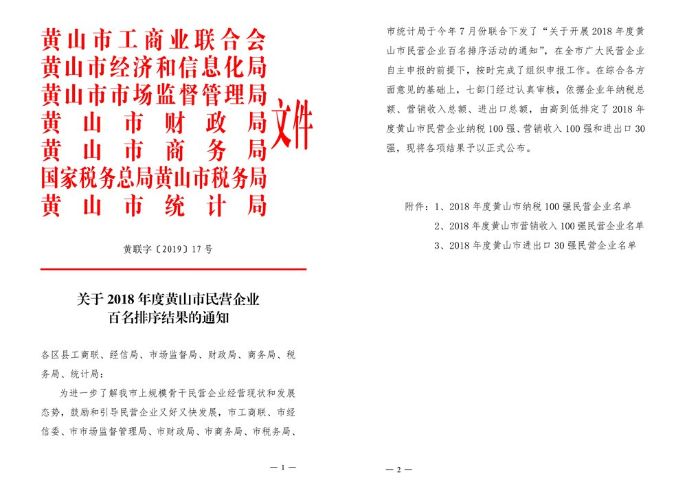 據悉,2018 年度黃山市民營企業(yè)百名排序工作旨在進一步了解我市上規(guī)模骨干民營企業(yè)經營現(xiàn)狀和發(fā)展態(tài)勢,鼓勵和引導民營企業(yè)又好又快發(fā)展,由市工商聯(lián)牽頭,會同經信局、市場監(jiān)督局、財政局、商務局、稅務局、統(tǒng)計局等相關部門認真組織落實,積極開展摸底推薦申報工作。按照真實、可靠、準確及企業(yè)自愿原則,對2018年度符合標準的企業(yè)進行調查登記并進行排序。
