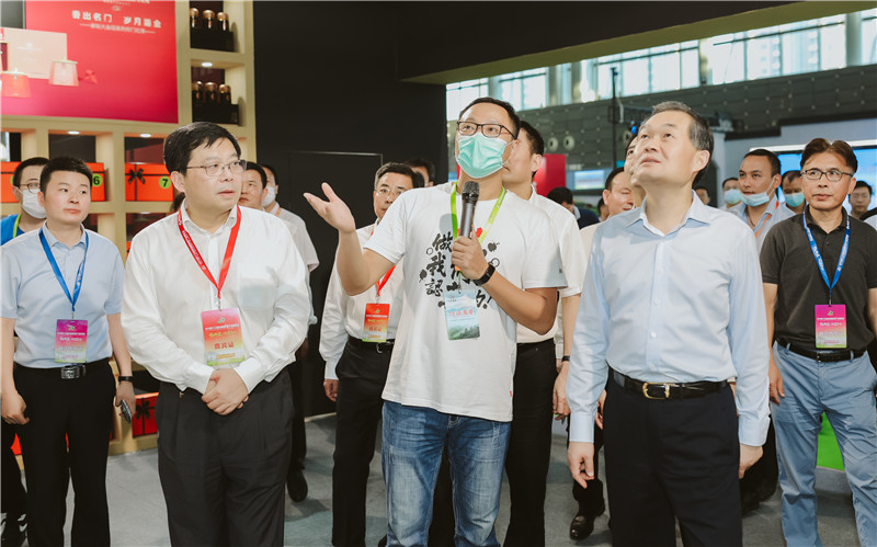 向張曙光副省長(zhǎng)(前排右一)等領(lǐng)導(dǎo)介紹謝裕大品牌館