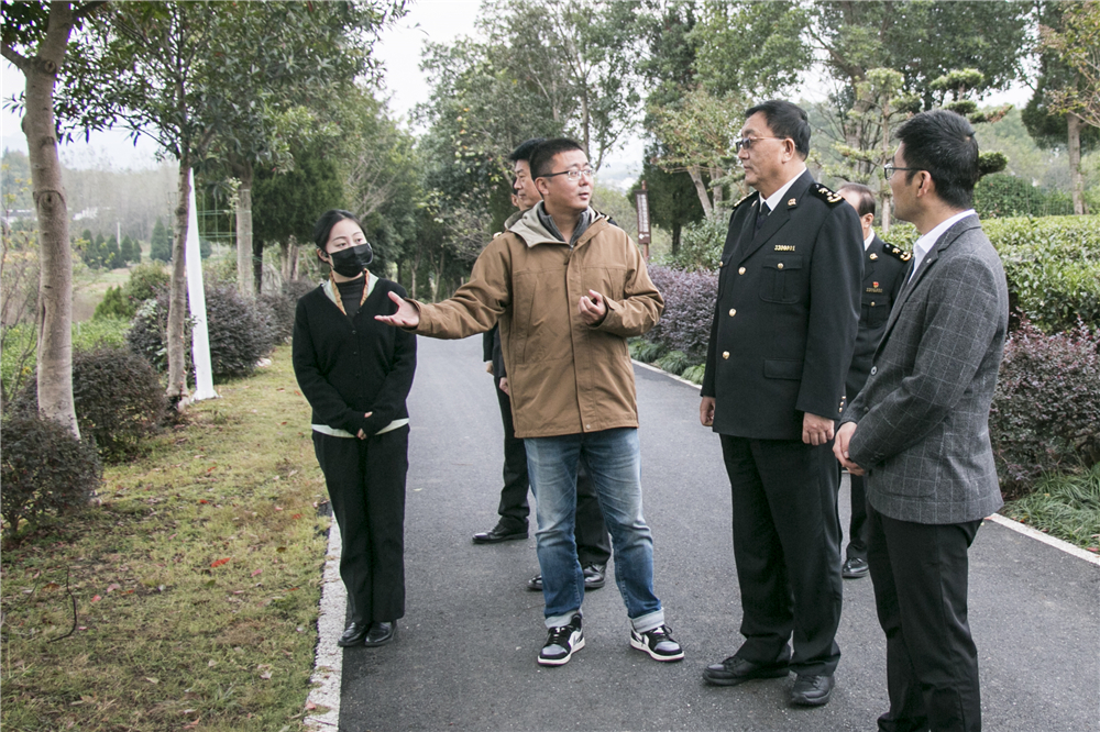 合肥海關(guān)黨委書記、關(guān)長辛建民一行深入茶園,聽取謝裕大副總經(jīng)理汪奔匯報相關(guān)工作情況