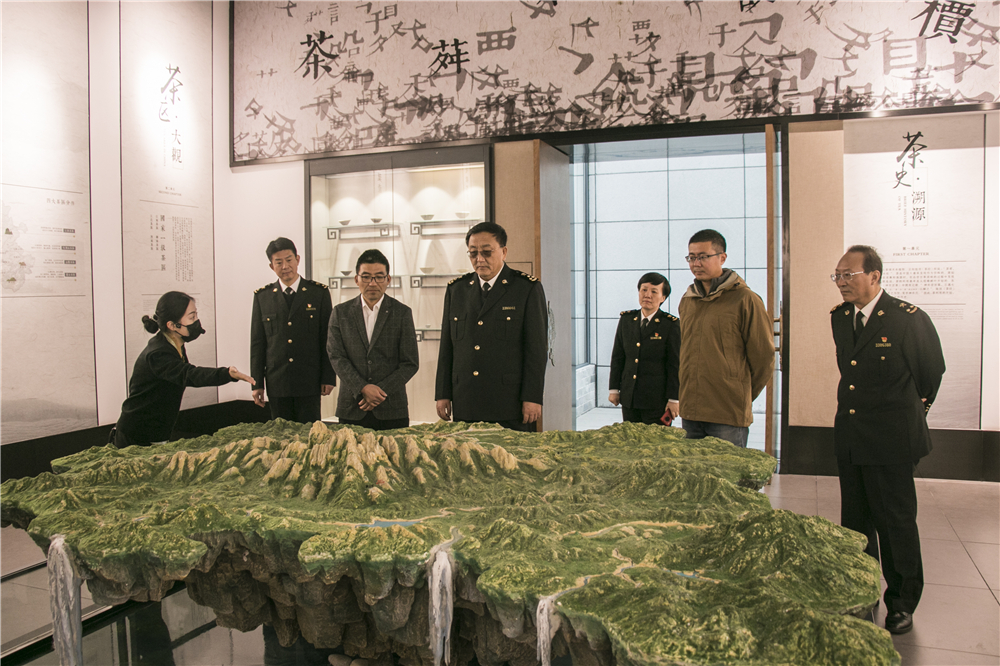 合肥海關(guān)黨委書記、關(guān)長辛建民(中)一行參觀謝裕大茶文化博物館
