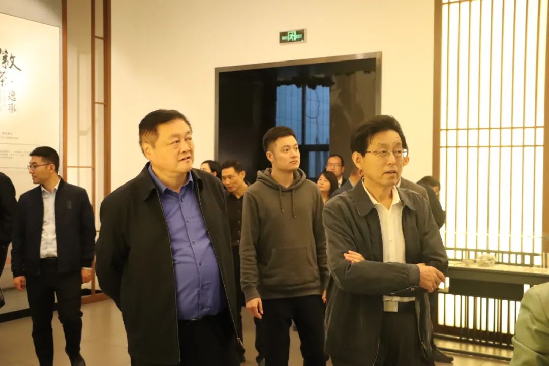全國人大常委會委員、省人大常委會副主任謝廣祥一行(右)參觀謝裕大茶文化博物館