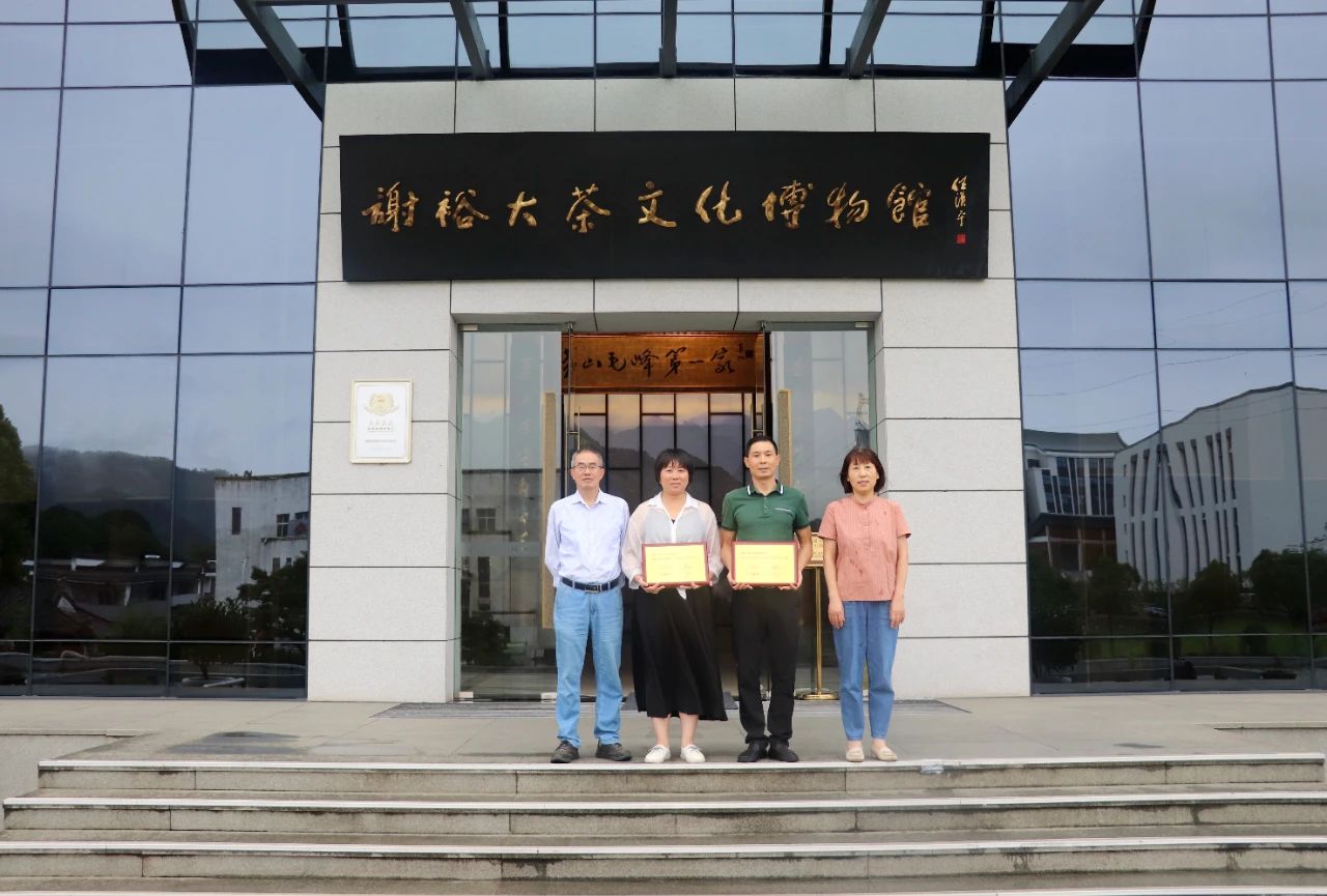 2023年8月30日,徽州區(qū)工商聯(lián)主席方秀莉、區(qū)青年商會(huì)辦公室負(fù)責(zé)人范秀明到訪謝裕大茶博園頒發(fā)營業(yè)收入百強(qiáng)及納稅百強(qiáng)榮譽(yù),謝裕大行政中心總監(jiān)桂利權(quán)代表公司接受榮譽(yù)獎(jiǎng)牌。