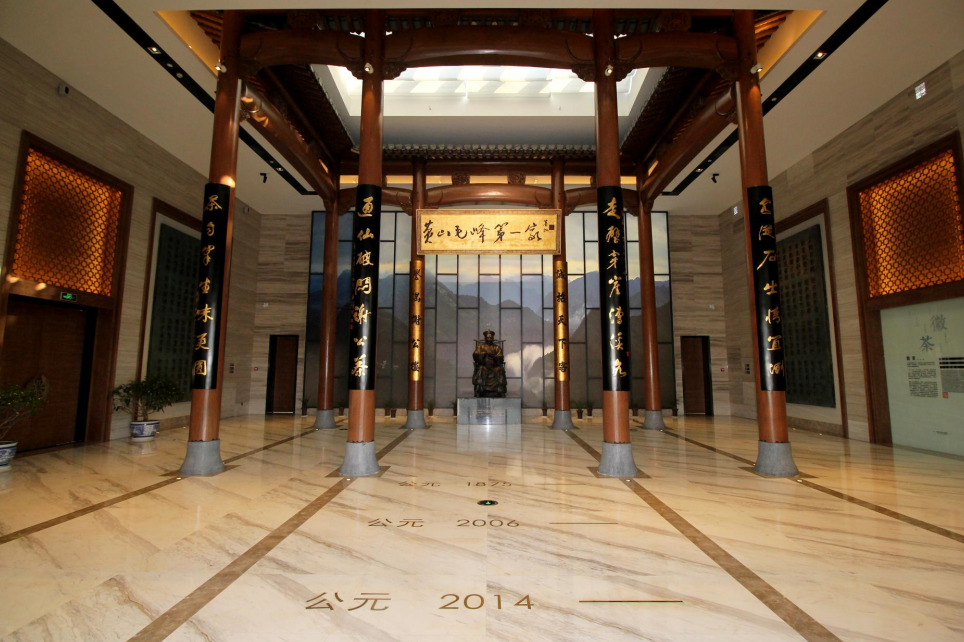 茶博館內(nèi)現(xiàn)有藏品百余件,包括歷年制茶器具、茶業(yè)歷史物品、茶文化相關書法及字畫、黃山地勢地貌沙盤、黃山毛峰與祁門紅茶工藝微型泥塑展示等,結合影像視頻,以茶史溯源、徽茶之光、茗香天成三個版塊十二個單元,詳細展示了中國茶葉及安徽茶葉的歷史和文化。