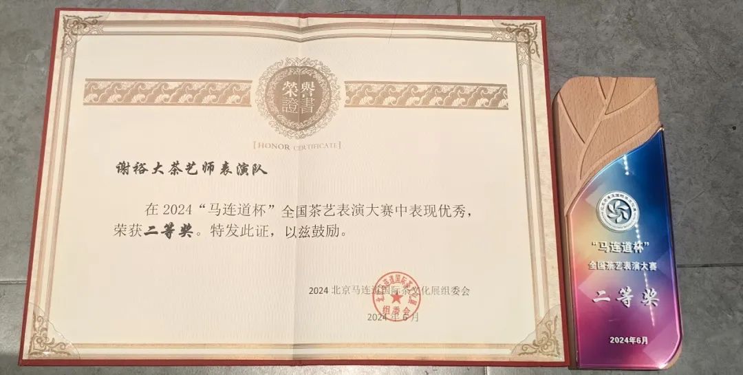 謝裕大茶藝表演劇目《茶香沁兵心》,為致敬“楊根思連”英雄們的英雄事跡而編排。茶作為情感的載體,是母親與女兒之間從不舍、遺憾到釋?xiě)?、自豪的小家情緒,與女兒把個(gè)人責(zé)任與中國(guó)責(zé)任緊緊相連的大國(guó)情感之間的鏈接,以茶祈愿家國(guó)情懷,歌頌了新時(shí)代的民族精神與文化傳承,榮獲“馬連道杯”全國(guó)茶藝表演大賽二等獎(jiǎng)。