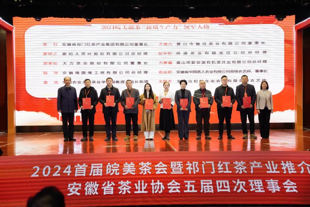 2024年12月27日,2024首屆皖美茶會(huì)暨祁門(mén)紅茶產(chǎn)業(yè)推介會(huì)在中國(guó)紅茶之鄉(xiāng)——安徽祁門(mén)成功舉辦。會(huì)上表彰了在2024皖美徽茶創(chuàng)優(yōu)調(diào)查中涌現(xiàn)出的先進(jìn)個(gè)人和單位,其中,謝裕大總經(jīng)理謝明之榮獲2024 皖美徽茶“新質(zhì)生產(chǎn)力”領(lǐng)軍人物稱(chēng)號(hào),這一榮譽(yù)不僅是對(duì)他個(gè)人在茶產(chǎn)業(yè)領(lǐng)域卓越貢獻(xiàn)的認(rèn)可,也是對(duì)謝裕大品牌在推動(dòng)茶產(chǎn)業(yè)高質(zhì)量發(fā)展中所扮演角色的肯定。