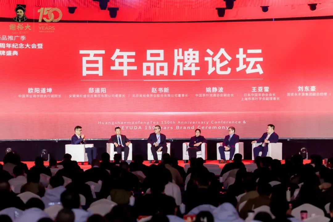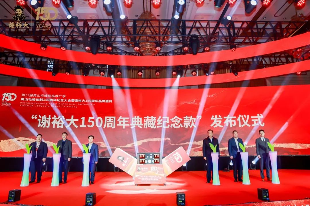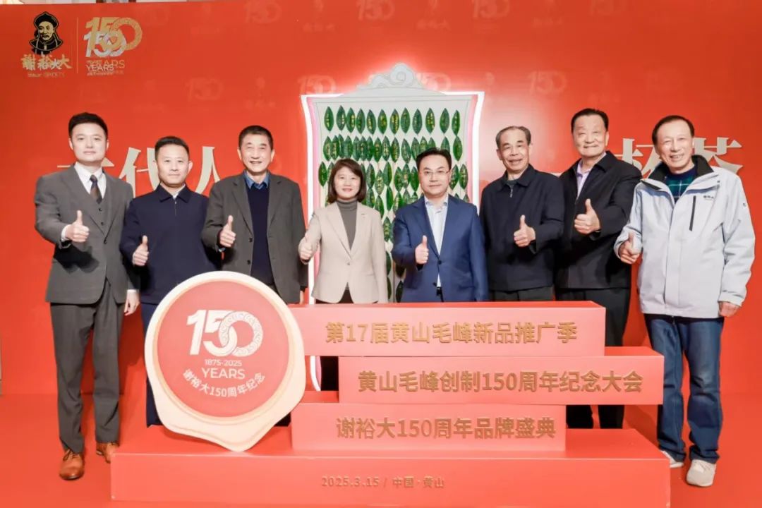 2025年3月15日,“第十七屆黃山毛峰新品推廣季——黃山毛峰創(chuàng)制150周年紀(jì)念大會暨謝裕大150周年品牌盛典”在黃山市徽州區(qū)盛大啟幕。安徽省政協(xié)原副主席、中國國際茶文化研究會副會長夏濤,中國工程院院士、湖南師范大學(xué)校長劉仲華,中國茶葉流通協(xié)會會長、全國茶葉標(biāo)準(zhǔn)化技術(shù)委員會主任委員王慶,黃山市人民政府副市長江卓琪、安徽農(nóng)業(yè)大學(xué)原校長、茶樹種質(zhì)創(chuàng)新與資源利用全國重點(diǎn)實(shí)驗(yàn)室主任宛曉春等政府部門領(lǐng)導(dǎo)、茶界專家學(xué)者、全國茶界企業(yè)代表以及謝裕大的杰出合作伙伴、謝裕大全體員工等近800人齊聚一堂,共襄百年茶企的傳承與創(chuàng)新盛舉,擘畫茶產(chǎn)業(yè)高質(zhì)量發(fā)展藍(lán)圖。