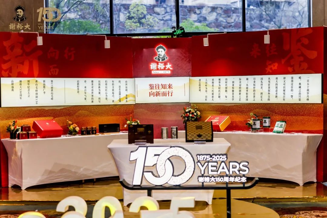 大會現(xiàn)場,“謝裕大150周年典藏紀(jì)念款”全球首發(fā)引發(fā)全場矚目?!爸x裕大150周年典藏紀(jì)念款”由非遺制茶宗師全程監(jiān)制,嚴(yán)選黃山毛峰、祁門紅茶、太平猴魁、六安瓜片四大徽茶核心產(chǎn)區(qū)春芽珍茗,萬叢取一成就標(biāo)桿品質(zhì)。搭配國瓷永豐源定制的「鉑金青花」茶器,以器物銘刻百年匠心,以品味續(xù)寫徽茶傳奇。
