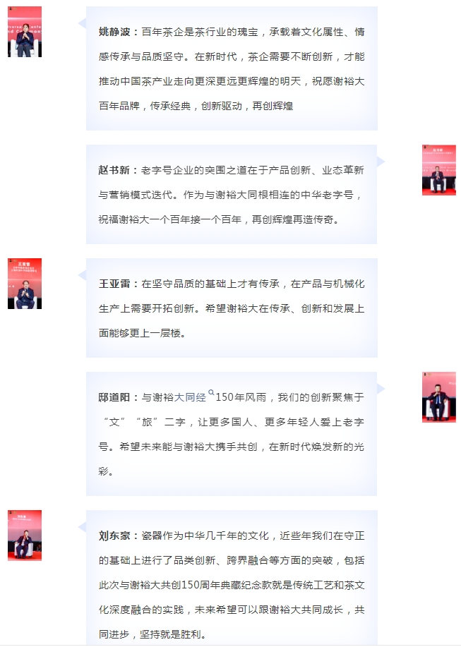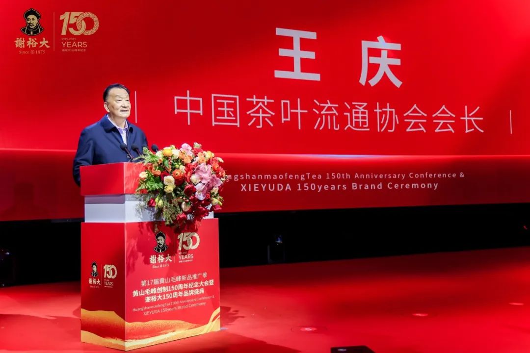 中國茶葉流通協(xié)會王慶會長站在全國茶業(yè)坐標(biāo)系,對謝裕大及黃山毛峰的百年傳承與守正創(chuàng)新表達(dá)了高度贊同。王會長表示“在當(dāng)今中國數(shù)萬家茶企中,像謝裕大這樣兼具歷史厚度、文化深度與品牌高度的百年中華老字號屈指可數(shù)、難能可貴?!蓖瑫r,謝裕大以科技賦能傳統(tǒng)工藝、以文化激活產(chǎn)業(yè)價值的創(chuàng)新實(shí)踐,也為中國茶業(yè)轉(zhuǎn)型升級提供了發(fā)展樣本。最后,衷心祝愿謝裕大以150周年為新的起點(diǎn),賡續(xù)前行、再續(xù)輝煌。